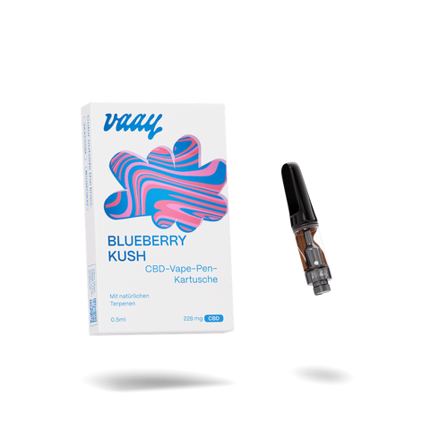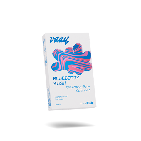Vape-Pen-Kartusche – BLUEBERRY KUSH (JPG, m. Hintergrund, quadratisch)