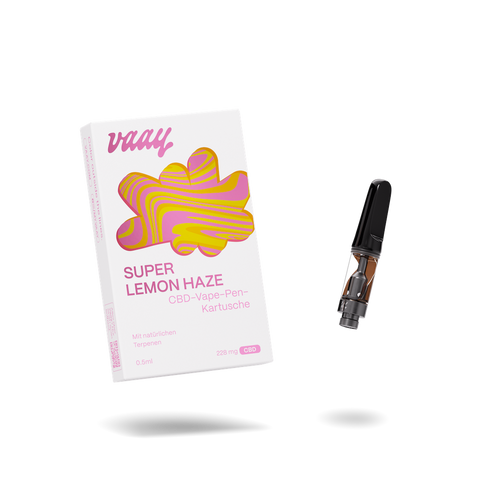 Vape-Pen-Kartusche – SUPER LEMON HAZE (JPG, m. Hintergrund, quadratisch)