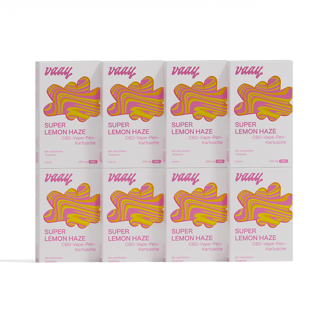 Für die Anwendung die Kartusche auf den vaay Vape Pen aufschrauben, Hitzestufe auswählen und vier Mal für 1–2 Sekunden inhalieren. Danach pausieren. Pro Tag empfehlen wir maximal 20 Züge. Vor Gebrauch leicht schütteln und kühl, trocken sowie lichtgeschützt aufbewahren.